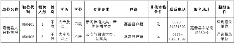 嘉善县检察院岗位表